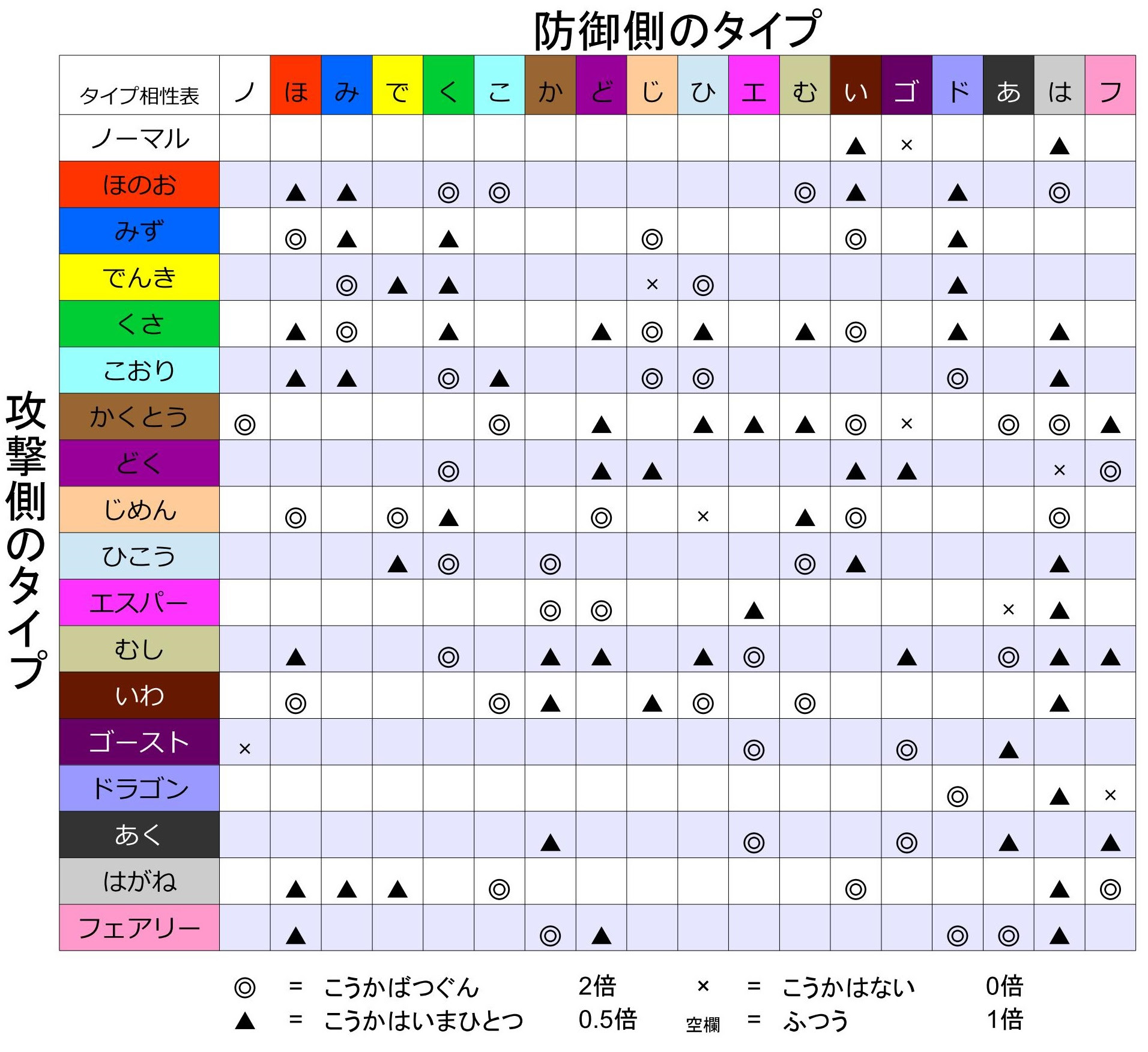 ポケモンに役立つ情報 タイプの相性表 ポケモンだいすき道場 アニメ 漫画 まにあ道 趣味と遊びを極めるサイト